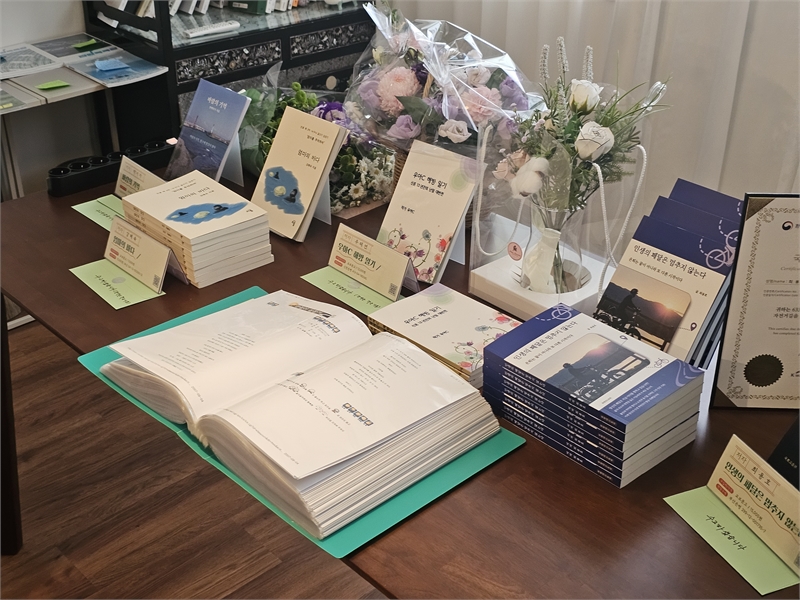 『엄마의 바다』강혜숙 작가는 엄마와의 추억을 풀어냈다. 저술 계기는 드라마 『폭삭 속았수다』 덕분이다. 드라마를 보며 해녀였던 엄마의 사연이 겹쳐 보여 많이 울게 되었고, 결국 엄마의 이야기를 쓰기로 결심했다. 출장 때문에 기차를 많이 이용해야 했는데, 기차를 기다리는 시간을 집필 시간으로 잡았다. 매번 부산역 파리바게트를 집필 공간으로 이용했는데, 빵 쟁반에 까는 유산지를 버리지 않고, 자필로 초고를 쓰곤 했다. “생각지도 못했던 옛날 기억들이 손을 따라 흘러나왔다”며 엄마의 이야기를 통해 ‘Well-dying; 품위 있는 죽음’이라는 주제를 잘 풀어냈다.