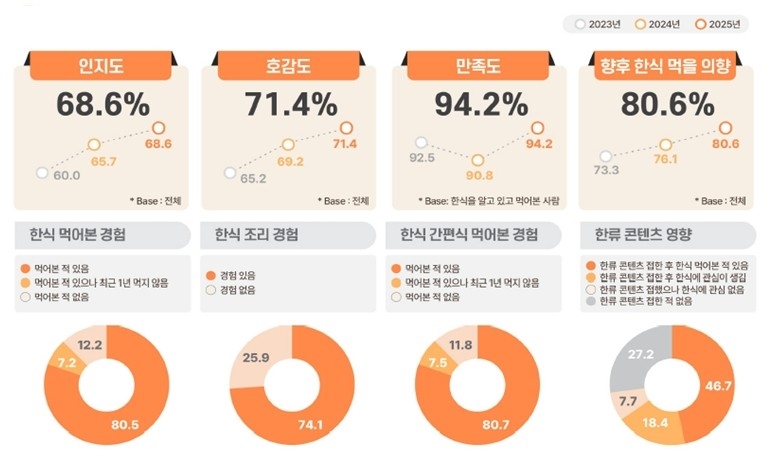 한식 만족도는 94.2%, 재취식 의향은 80.6%로 모두 상승세를 보였다.