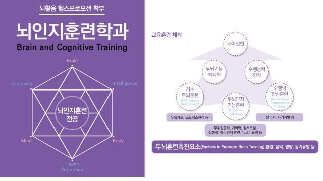 뇌교육 학문화 경쟁력을 바탕으로 생애주기별 뇌활용 전문인력 양성 체계를 구축한 글로벌사이버대학교는 뇌교육학과와 신설되는 뇌인지훈련학과를 묶어 뇌활용헬스프로모션학부로 승격시켰다.