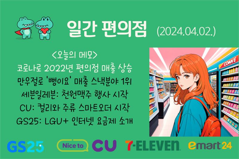 어느 덧 라이프스타일 비즈니스의 최전선이 되고 있는 편의점. 오늘의 편의점에는 어떤 일이 벌어지고 있을까요? 편의점 소식에서부터 사건사고까지... 편의점의 이모저모를 살펴봅시다. 오늘 하루 보도된 주요 편의점 기사들을 정리해 보았습니다.
