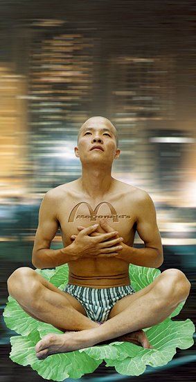 ☞왕칭송: 나는 사회적인 문제에 관심이 많다. 예를 들면, 중국에 유입된 서양의 것, 즉 서양 문화가 중국 사회에 파급된 현상을 말하는 것이다. 서양의 맥도날드라는 패스트 푸드가 처음으로 중국에 도입된 것은 1993년이다. 이제 맥도날드는 중국 전역에서 쉽게 찾을 수 있는 중국 음식 문화의 한 유형으로 자리 잡게 됐다. 중국의 전통이 사라지는 대신 점점 서양의 것으로 대체되는 상황에 나는 관심을 기울였으며, 이것을 토대로 작업을 하게 됐다.