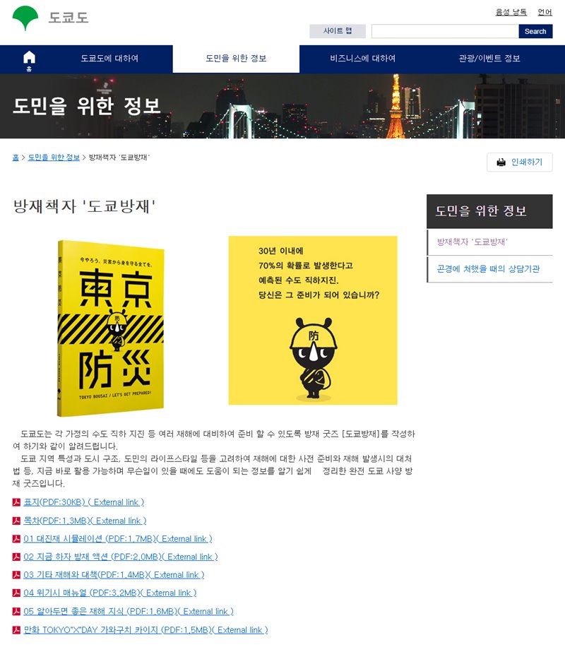 게다가 평소 지진을 접해보지 못한 외국인을 대상으로 픽토그램 마련 및 초동대응을 위한 상황설명과 대피요령을 포함한 외국인대상 매뉴얼까지 구비하는 등 홍보활동을 실시하고 있다. 이처럼 외국인을 포함한 노약자, 여성 및 아동 등 상대적으로 취약한 거주자에 대해서도 사전대비가 필요하다.