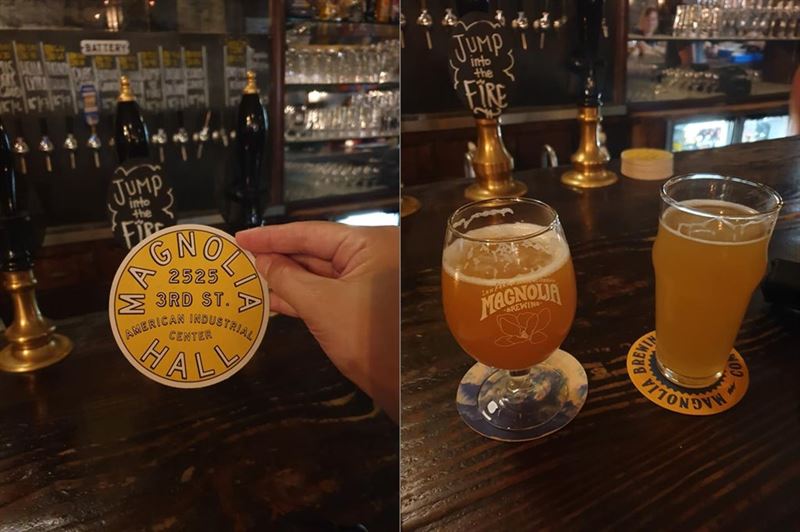 오는 길에 눈여겨 봐둔 메그놀리아 브루어리를 들렀는데, 로컬 사람들에게 꽤나 사랑을 받는 로컬 맥주 브랜드임을 증명하듯 자리가 만석이었다. 겨우 자리를 찾아 앉은 다음 인터넷으로 찾아보니 1997년에 오픈해서 23년의 역사를 가진 로컬맥주였다. 공간도 1903년에 지어진 건물로 히피 무브먼트가 한창이던 시절에는 드러그스토어 카페(Drugstore Cafe)로 당시 히피들이 즐겨 찾던 스팟 중 하나였다. 메그놀리아 브루어리는 화려한 인테리어로 탈바꿈하기보다는 세월의 흔적을 그대로 드러내 멋스러움을 더했다.